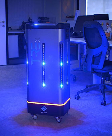 TREX Is the world's first便攜式 UV-C LED 消毒設(shè)備,省時(shí)Efficient,保護(hù)環(huán)境,并可在狹窄的區(qū)域進(jìn)行消毒。TREX 可到達(dá)機(jī)器人到達(dá)不了的地方。借助緊湊的設(shè)計(jì)和輪式底盤,TREX 被設(shè)計(jì)成一種高效、便攜式的消毒裝置。
